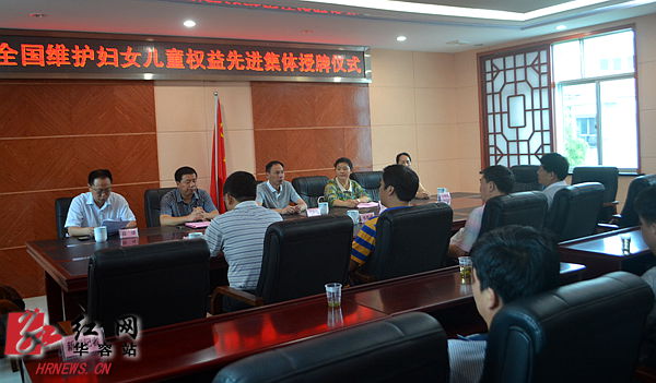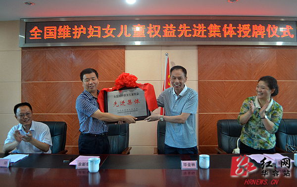 红网华容站7月2日讯(分站记者 蔡建业)6月26日上午,在热烈的掌声中,县委常委、宣传部长、统战部长毕金林将“全国维护妇女儿童权益先进集体”牌匾郑重移交到县民政局负责人余新奇手中。