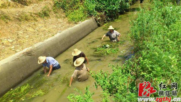 6月以来,桃江县出现持续晴热干旱天气,农田急需灌溉用水。灌区渠道呈现上游水位偏高,而下游用水却很稀缺的情况。工程技术人员经现场勘察得知,由于夏季气候适宜,渠道底部水草疯长,阻碍了水流畅通,上游的水到不了下游,灌溉用水发挥不了作用。为确保渠道流畅,农民用水不愁,27日到29日一轮强降雨过后,逢抗旱局势缓解之时,局党组立即着手组织进行渠道清淤扫障和查险处险工作。