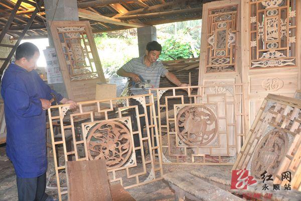红网永顺站7月3日讯(通讯员 罗远程 彭文泓)永顺县松柏镇龙须村村民胡光凡从事木工与雕刻技术30余年,他一边收集古物图案一边借助杂志资料进行创意,将门窗业务做得有声有色。其雕刻的图案形象逼真,姿态各异,造型美观,有福禄寿喜、梅兰竹菊等近100种图案。