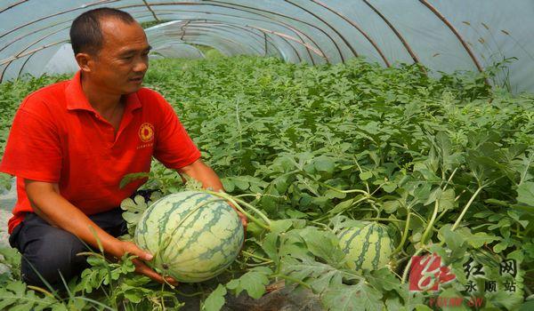 红网永顺站7月3日讯(通讯员 吴华)6月28日,永顺县灵溪镇猛岗村高尖口组,48岁的瓜农周大召正在瓜田里查看和选摘西瓜。周大召是老司城村周家湾人,曾经在广州打工11年,学到了不少外地种养经验,掌握了许多先进致富技术,尤其对西瓜的品种和引进深感兴趣。