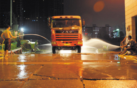 据统计,长沙城区大小建筑垃圾运输工地近200个。今年3月,长沙市新修订了对城市建筑垃圾处置许可程序,明确规定对建筑垃圾处置量在5万立方米以上的工程,必须建立全自动高压喷淋式洗车作业平台。目前已有20多个工地建立了全自动洗车设备并投入使用。从实际效果看,新设备明显提高了车辆洗车通行能力,节约了人力资源,1分钟可洗净一台车,效率提高两倍,且明显减少下半夜后人工长时间洗车疲劳等人为因素而影响清洗效果,80%的水可以回收重复利用。