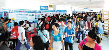 中考招生咨询会现场,前来咨询的家长和学生达6万多人,各展台前围满了人。均为余志雄摄