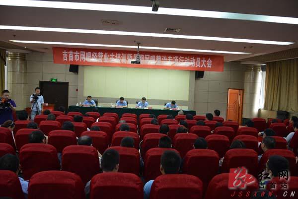 动员会上,吉首市文化市场综合执法局负责人组织全市网吧经营业主,学习了《互联网上网服务营业场所管理条例》,对网吧行业相关的规章制度有了详细的了解。会议要求,各网吧一定要严格按照互联网管理条例合法、安全经营。要进一步加强对网吧从业人员网络管理知识的教育管理,严格落实身份证实名制上网制度,认真核对、登记上网人员有效身份证件,坚决杜绝无证上网。要及时维护好网吧运营设备,网吧服务器、视频监控系统等设备要做到24小时正常运行,并保持良好上网环境。对一次性接纳8名(含8名)以上未成年人或累计两次接纳未成年人的网吧,一律实行停业整顿15天以上的行政处罚。