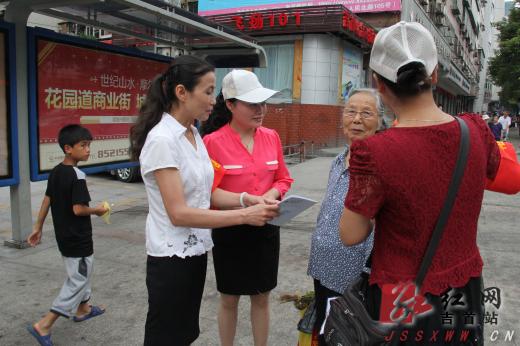 红网吉首站7月5日讯 (通讯员 张黎霞) “请您不要乱丢垃圾,要养成爱卫生的好习惯”,“请您的车不要乱停乱放,遵守交通规则”,“请您爱护公物,吉首是我们共同的家”……今天上午,五十余名巾帼志愿者在城区各人口密集路口,开展“同建同治· 巾帼在行动”文明劝导。