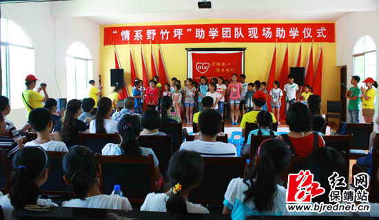 助学团队为孩子们送来了助学金、衣物、文体用具。志愿者与孩子们还进行了节目表演、游戏等现场互动。时而沉思,时而欢声,时而鼓掌,现场气氛跌宕起伏,扣人心弦。志愿者“颖子”被现场所感动,泪水止不住的往下流,来自长沙的“晚风”希望孩子们能够好好学习,将来成为国家有用的人,来建设自己的家乡,留守儿童龙艺玲等表示立志成才,决不辜负社会各界的殷切希望,将来成为和叔叔阿姨一样的人。