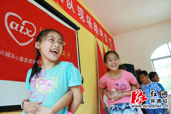 来自长沙的小朋友和野竹坪镇当地的小朋友一起玩游戏 彭元伟 摄