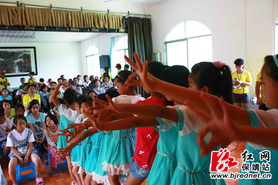 学生表演节目欢迎远道而来的叔叔阿姨们 彭元伟 摄