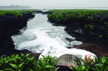 2013年3月,常德汉寿县湖南广源麻业有限公司的排污口向洞庭湖排放污水。图/记者杨旭