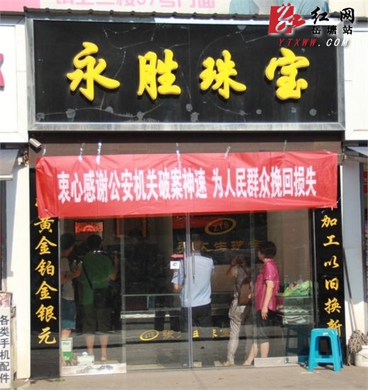 6月28日早上,位于板塘铺的永胜珠宝店被盗,店内价值近100万元的千足金首饰及部分银饰被洗劫。