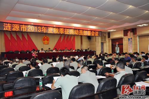 红网涟源站7月17日讯(分站记者 彭诗君 通讯员 严中君 曾根林)7月16日,涟源市2013年夏秋季征兵动员部署会议在涟源宾馆小礼堂召开,市委常委、常务副市长、市征兵工作领导小组组长吕余庚出席并讲话,市委常委、人武部长、市征兵工作领导小组副组长李立人总结讲评去年征兵工作,对今年夏秋季征兵工作进行安排部署,市人武部政委段德学主持会议。