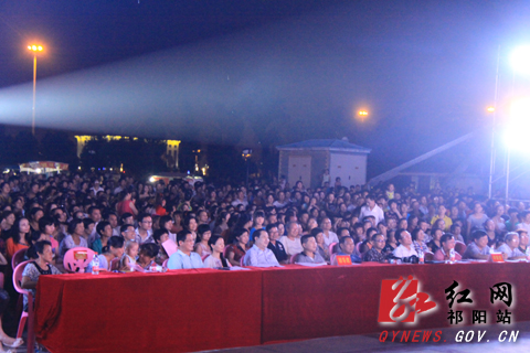 红网祁阳站7月19日讯(分站记者 刘志军)7月18日晚,祁阳县陶铸广场上人山人海,热闹非凡,由中共祁阳县委、祁阳县人民政府主办,中共祁阳县委宣传部、祁阳县文广新局承办,祁阳县广播电视台、祁阳县文联协办的“欢乐潇湘 幸福祁阳”大型群众文艺汇演祁阳主会场汇演在这里拉开序幕。祁阳主会场汇演共分4个晚上进行,7月18-20日为预赛,7月23日为决赛,决赛同时也是“欢乐潇湘 和美永州”祁阳分会场的演出。县委常委、宣传部长邓年生,副县长谢铁山,政协副主席、文广新局局长黄爱蓉等领导出席。