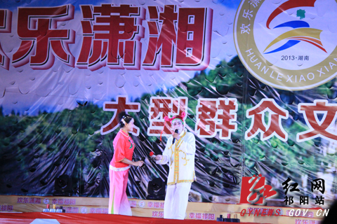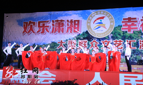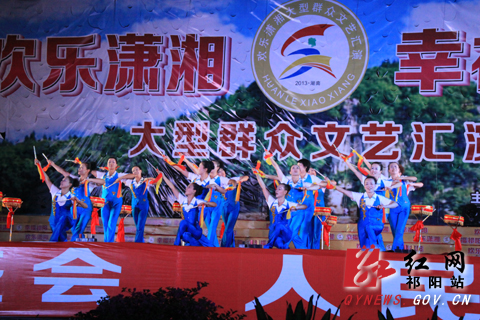 为深入贯彻落实党的十八大精神和响应省委、省政府在全省开展“欢乐潇湘”大型群众文艺汇演活动的号召,祁阳县委、县政府今年4月就对活动进行了安排部署,全县设立一个主会场,各乡镇场设立分会场,要求每个乡镇场至少举办一场大型文艺汇演。经过近4个多月的周密策划,精心组织,全县共有25个镇乡场(办)和13个县直单位参加,共排练节目300多个,参演人员近万人,观看群众10万人次以上,在全县迅速掀起了“欢乐潇湘 幸福祁阳” 大型群众文艺汇演的热潮。