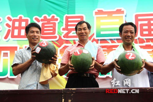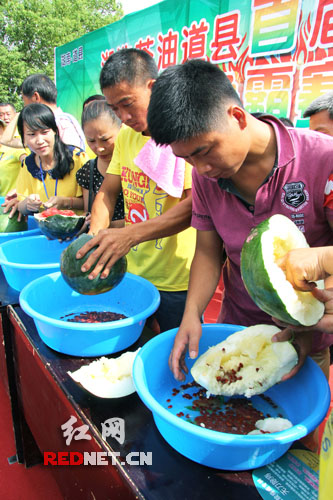 红网道县7月20日讯(通讯员 何红福)7月20日,湖南道县首届洗籽瓜瓜王争霸赛在县城红军墙广场激情开赛。比赛现场决出洗籽瓜重量王、瓜籽王、吃瓜大胃王和磕瓜籽王。
