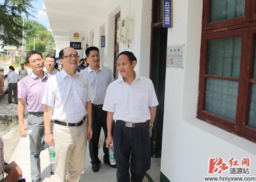 娄底市委组织部副部长刘乔晚(右一),涟源市委常委、组织部部长、统战部部长朱桂良(右三)等一行参观石马山镇湖泉群众工作站。