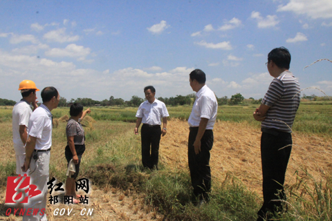 红网祁阳站7月22日讯(分站记者 刘志军)7月22日,祁阳县委副书记桂砺锋冒着炎炎烈日,深入文富市镇和黎家坪镇检查指导抗旱工作。