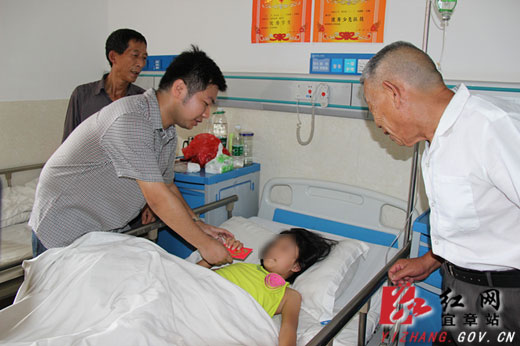 红网宜章站7月23日讯(分站记者 李明华)7月22日,共青团宜章县委书记罗瑞一行和宜章志愿者(义工)协会部分代表来到宜章人民医院看望患病留守儿童柳薇同学,并带去慰问金。看望人员亲切询问了柳薇的病情、生活情况,同时勉励柳薇要树立信心,要勇敢、坚强、积极乐观的与病魔作抗争,争取早日康复回到校园。