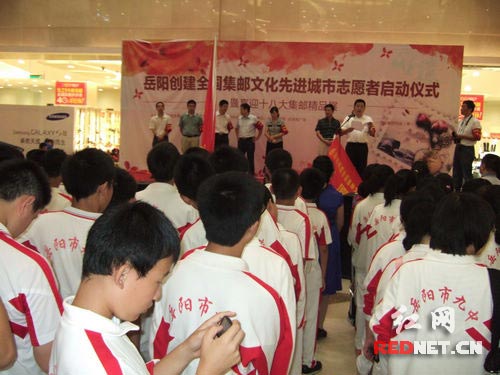 (在步步高广场举办的岳阳市集邮文化志愿者活动。)