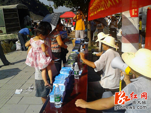 红网古丈站7月29日讯(通讯员 向国林 苏安周)7月28日上午,正逢古丈县罗依溪镇赶集日子,该镇茶叶村的党员干部在街道边搭了一个简易的台子,大家顶着炎炎烈日,一边吆吼,一边向来往行人发放各种养殖业科普宣传资料。