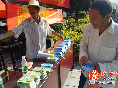 这是该村水产养殖协会会长杨明宏精心筹划的一次科普宣传活动,作为该村发展养殖业的致富能人,为了带领一方百姓共同发展产业,实现小康,他通过多方自筹资金,结合该镇农业实际情况,印制了网箱养鱼、养鸭、茶叶加工、柑橘培管、竹鼠黑豚等特种养殖业的实用技术小册子和宣传资料,内容通俗易懂,简明扼要,老百姓一看就懂,一看就会,拿到小册子的老百姓们边看边点头:“有了这个好东西,以后我们碰到什么问题就不难了”。