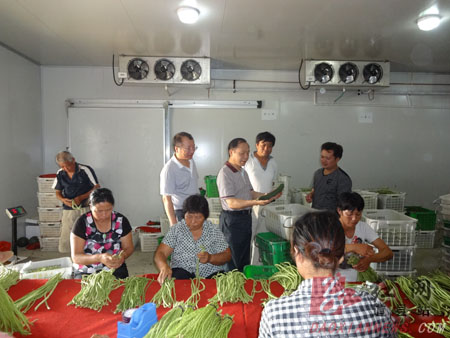 随后,谢国华一行来到道县蔬菜产业冷链物流园,在果蔬保鲜库内,工人们在有条不紊的包装整理刚采摘回来的豇豆、黄瓜等新鲜蔬菜,并及时发往港澳市场。谢国华充分肯定了道县发展蔬菜产业取得的成效:一是基地规模大,标准高;二是产业化经营,产业链比较完善;三是市场国际化,订单生产外销;四是检测标准严,质量安全有保障。同时指出,道县要把蔬菜产业继续做大做强必须从规模上下功夫,打造国家标准蔬菜园区;从设施上下功夫,大力设施栽培蔬菜;从品牌上下功夫,发展地方特色品牌蔬菜;从市场开发上下功夫,立足港澳,走向欧美;从标准化上下功夫,大力发展有机蔬菜。