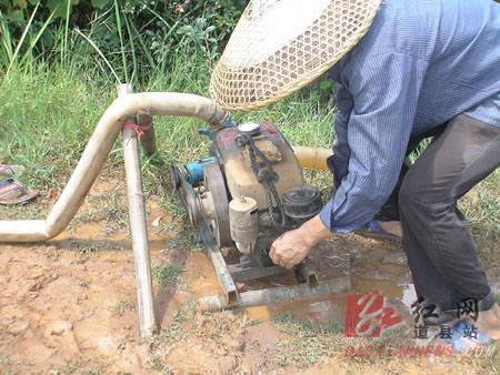 图为上关街道办事处董家冲村村民正在用柴油机抽水灌溉。