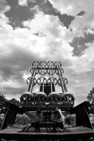 8月4日下午1点,在醴陵市神福港中学篮球场,醴陵市气象局工作人员做好人工降雨的准备,发射架对准天空,等待合适的对流性云层出现。 本报记者刘平摄