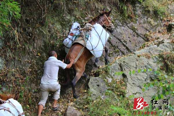 洗溪镇社区仲溪大凹寨无公路、山路陡峭,路极其难走,全寨百余人大多数已搬离该处,现只有8名老人在家。大凹寨已无干净水源,用水十分困难。镇长王海军亲自带队,找来一支马队为老人送水。通往大凹寨的路非常陡峭,很多路段极其难走,道路相当狭窄,到了马不能前进的地方,又必须把水桶从马身上卸下来,靠人小心翼翼用肩扛过,走过了狭窄的路段,再把水桶装上马背。经过3个小时的艰难行走,才把24桶水送到8户老人的家中。