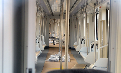 车厢内两侧各设一排座位,乘客相对而坐,车厢中间和两侧均设有站立扶手。本报记者 徐行 摄