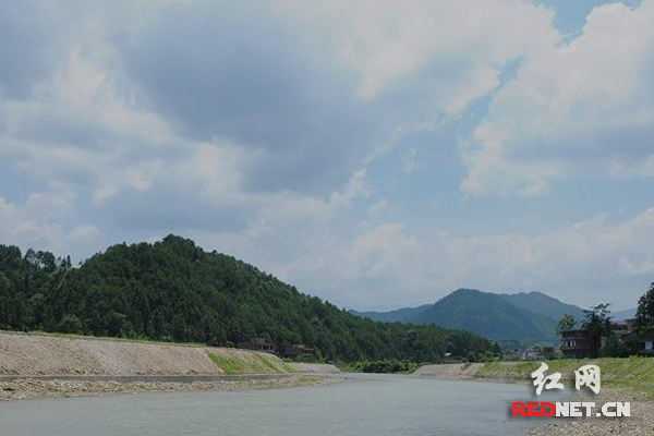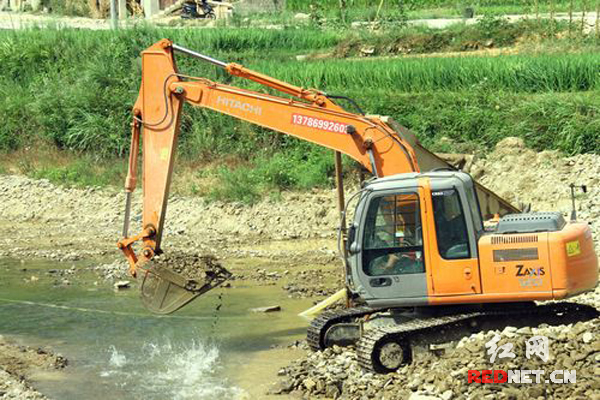 红网隆回8月9日讯(通讯员 贺上升 刘中芳)8月9日,一台挖掘机正在湖南隆回县司门前镇金潭村河流中施工作业。今年,该镇一都河流域治理工程11公里纳入为民办实事项目,工程将原来的老河道经过清淤、拓宽和整治,加固河堤河坝,新增了一大片旱涝保收的良田,大幅提高了河道行洪抗旱和抵御自然灾害的能力,沿河两岸受益群众达5万多人。经治理后一都河沿河两岸将绿化成为一道生态风景线,营造了“水清、岸绿、流畅、景美”的水生态环境。