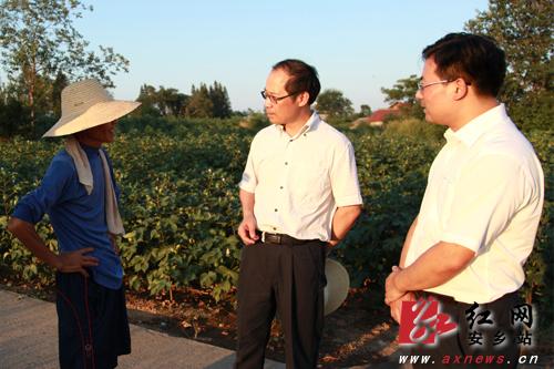 每到一个村庄,每到一处干旱点,宋云文都详细询问了旱情发展及应对措施。在安全乡,村民老李正准备给自家棉地引水灌溉。“老乡,现在棉地里的旱情怎么样?对棉花的影响大不大?”宋云文关切地向老李问起来。老李高兴地说:“虽然我们这地势比较高,水进入村里的沟渠比较难,和往年相比,地里或多或少会受到了影响,但是现在乡里的电排在不断引水进来,我们可以用水泵抽水到地里,花不了多少钱,还是能够保证棉花的正常生长。”