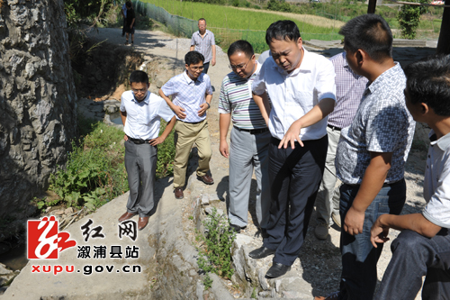 在均坪镇老窑上村察看水源储量情况