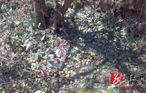 被冰雹砸了一地的果子(郭孚坚/供图)