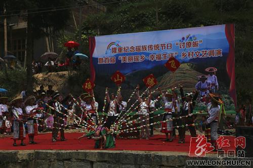红网隆回站8月13日讯(通讯员 龚恒)8月9日,一年一度的湖南隆回花瑶传统佳节“讨僚皈”庆祝活动暨首届“欢乐潇湘 美丽瑶乡”乡村文艺调演在虎形山瑶族乡矛坳村隆重举行。各村村民村自编、自导、自演的歌舞、小品等节目精彩纷呈,本土著名歌手袁树雄为活动献唱的歌曲《我是魏源故乡人》更是将活动推向高潮。