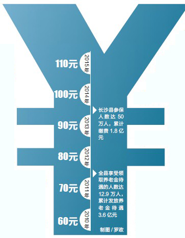 长沙县现有城乡居民养老保险基础养老金为每人每月80元。记者昨日从长沙县人社局获悉,从今年7月1日起,连续三年,城乡居民养老保险基础养老金每人每月增加10元。