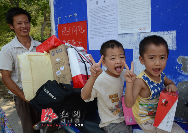怀化三中校友会长沙分会和潇湘晨报怀化主页为黄满婷等28名灾区小孩每人一套衣服、一双鞋、一套学习用品 龙本亮 摄影