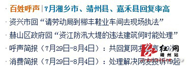 红网靖州站8月14日讯(分站记者 覃雪莲) “靖州七月《百姓呼声》舆情信息共计103条,大部分已得到有效回复和妥善处理。”近日,从红网《百姓呼声》栏目组再次获悉,靖州县网宣中心七月份回复质量高,回复时间快,回复率全省排名第二。此前,靖州六月《百姓呼声》回复率已达全省第三。