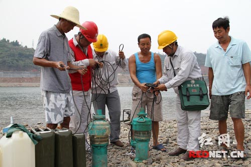 红网泸溪8月19日讯(通讯员 唐正海 戴德明)8月19日,国网泸溪县供电公司共产党员保电抗旱服务队员,在泸溪县白沙镇刘家滩村帮助村民排查抗旱电排故障。