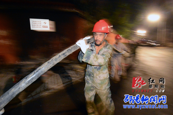 国网邵阳供电公司抢修队员连夜铺设新的电缆