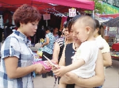 县人口计生工作人员在乡镇开展计划生育宣传。