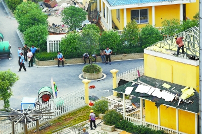 时刻新闻 —分享— 8月21日,衡阳市石鼓区永兴家居广场的违规所建楼顶别墅在相关部门的监督下开始拆除。该广场有一个近2万平方米的楼顶,25栋别墅整齐地排列着,极为壮观。这些别墅建成于2009年,未办理任何审批手续。 尹优 摄 来源:湖南日报 编辑:王娉娉