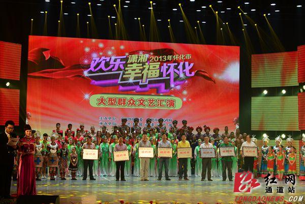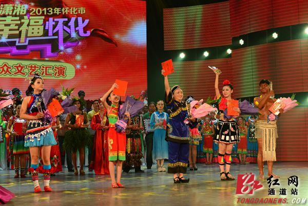 晚上7点50分许,一场欢快的群舞《百花盛开》拉开了2013 怀化市“欢乐潇湘· 幸福怀化”大型群众文艺汇演决赛的帷幕。接着,通过预赛、决赛,层层筛选,洪江市、沅陵、新晃、麻阳、洪江区、溆浦、辰溪、鹤城区、会同、通道、芷江、靖州等县( 市、区)17个舞蹈、小组唱、大歌等节目,轮番亮相。