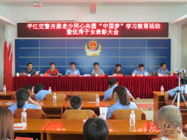 红网平江站8月23日讯(分站记者 赵琨 通讯员 刘明)8月23日,平江县交警大队在大队六楼召开了有全体民警、家属、子女参加的老少同心共圆中国梦教育活动暨优秀子女表彰会,县政协副主席、关工委主任童缅思、副主任黄志湘、秘书长徐婷应邀与会。