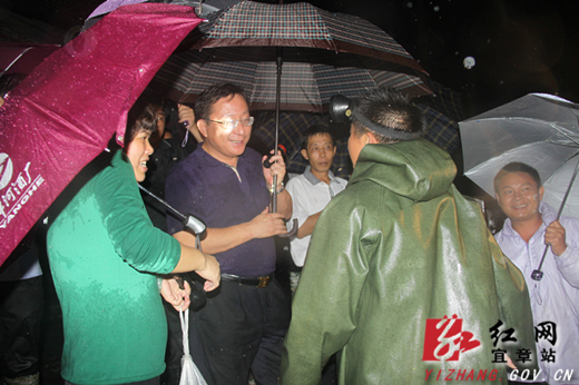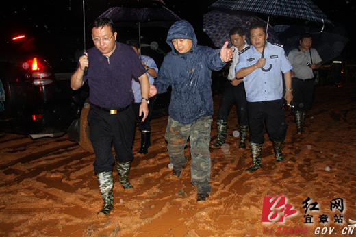会议结束后,县五大家领导分成几大组奔赴各乡镇,深入一线指导防汛工作。县委书记欧阳锋率队到东部地区乡镇督战,一直到坚持到8月23日凌晨3点多。欧阳锋在冒雨指导防汛工作时强调,要及时组织群众转移,特别要注意孤寡老人和儿童的安全转移,确保人民群众生命财产安全。