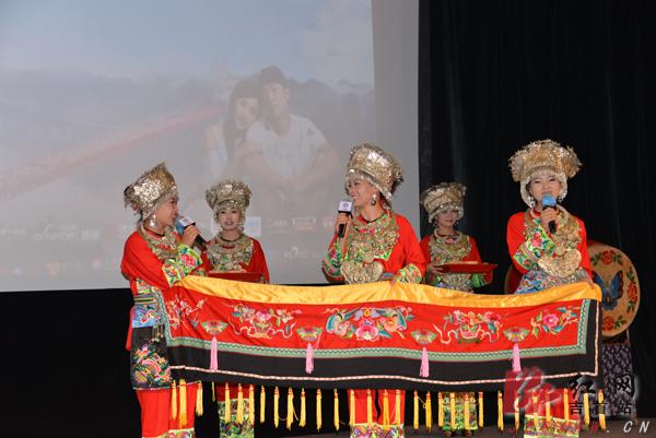 发布会在欢快的苗家迎宾鼓声中拉开了帷幕,随后著名青年相声演员白凯南作为活动嘉宾,送上了对《一次性爱上》的VCR祝福,紧接着来自湘西的民族歌唱家现场为大家演唱了吉首城市品牌歌曲《吉首吉》。隔空的祝福以及“谷韵吉首”城市品牌文化的展示,使得现场媒体朋友和嘉宾们齐临一场绘声绘色的影视民族盛宴。活动当天,男主角曲少石和女主角曲桐雨清新亮相。