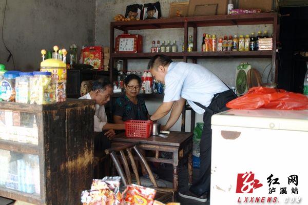 该院民一庭庭长胡立新来到城南社区商店走访并发放资料
