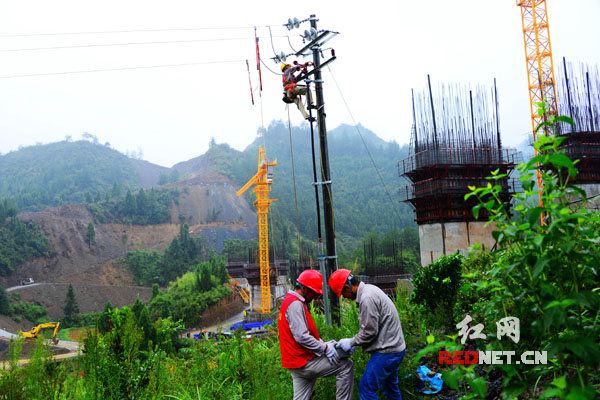 红网长沙9月4日讯(通讯员 刘文化 周建华 宋涛)9月4日,湖南省永顺县电力公司高峰供电所配电班的6名电力工人,冒雨在勺哈乡基湖村为在建的龙永高速公路19标段排查抢修10千伏电力故障。经过昨天到今日连续两天的突击抢修,恢复了17至21五个标段的电力供给,保障了高速公路和当地百姓生产生活的正常用电。