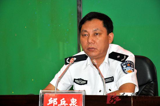 市“三改四化”工程建设指挥部交通组副组长,市公安局交警支队支队长邱兵泉发言。