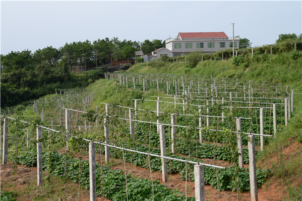 “八月炸”这样的优质水果,可惜一直作为山野之果“养在深闺”,没有得到重点开发。2008年5月,从原石门县生资公司下岗的李冬平,与3位志同道合的伙伴一道,租赁夹山镇浮坪村水库边的1000亩土地,共联合投资600多万元,在湖南省园艺研究所的技术支持下,长期雇请当地村民12人,开荒垦地,树桩搭架,栽苗建园,开发出这片特色水果基地。基地为一座半岛,三面环水,土地平畴,绿意盎然,恰似一艘乘风破浪的“绿舟”,驰骋在碧波荡漾的湖面上,生产条件优越,生态环境优美。