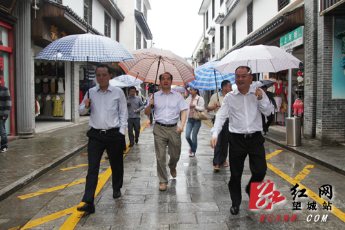 临湘市市委副书记、市长龚卫国(中)龚卫国游览望城区乔口古街。(姚泽子 摄)