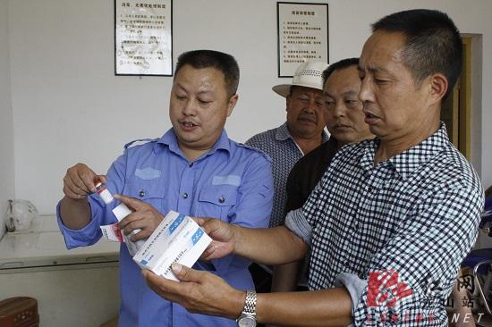 在召市镇畜牧站,县乡两级畜牧技术人员检查冷链保藏的动物疫苗